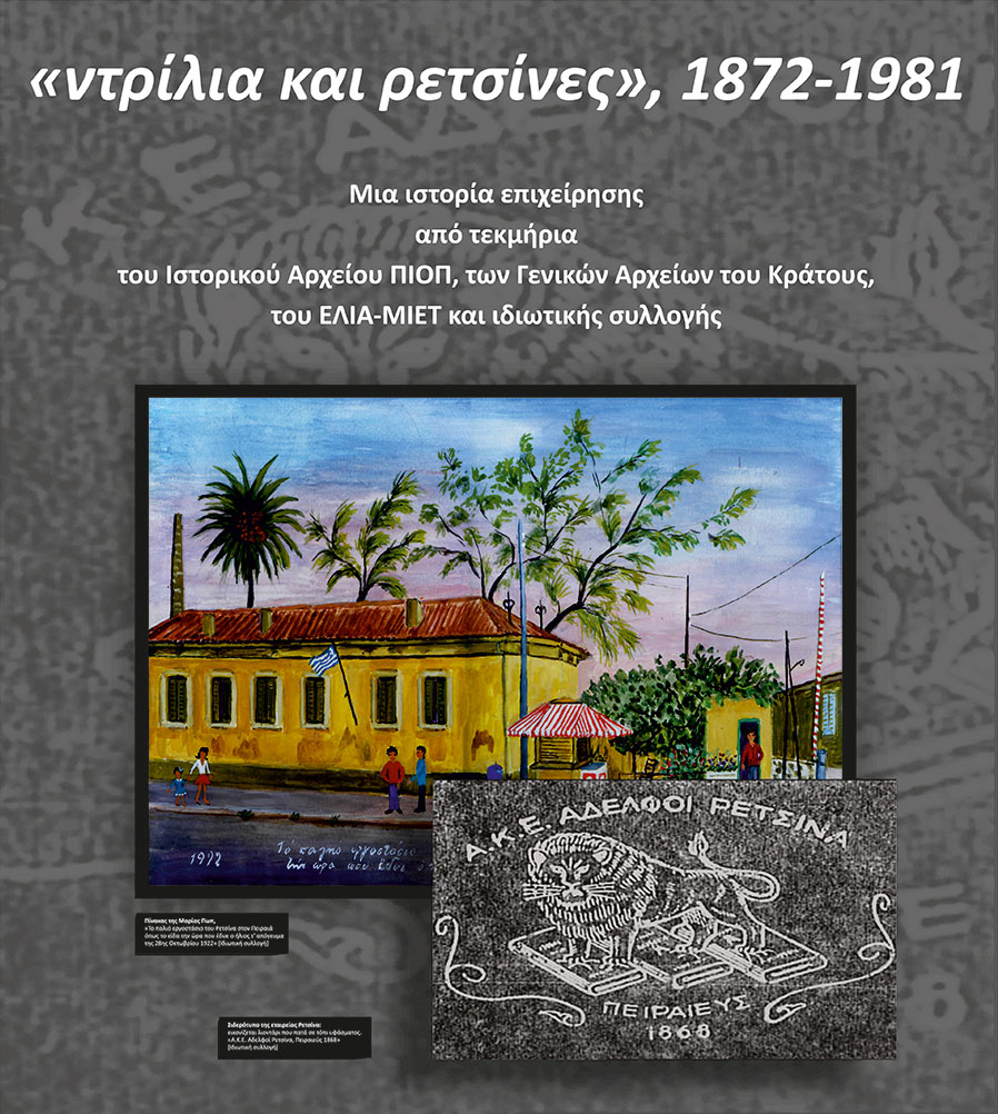 Παρατείνεται έως και 28 Φεβρουαρίου 2017 η έκθεση «ντρίλια και ρετσίνες», 1872-1981, η οποία παρουσιάζεται στον χώρο του Ιστορικού Αρχείου ΠΙΟΠ. Η έκθεση αναδεικνύει με λιτό και κατανοητό τρόπο την ιστορία της κλωστοϋφαντουργίας των Αδερφών Ρετσίνα, ενταγμένης στο πλαίσιο του κλάδου της, κι αντιμετωπίζει όλα τα βασικά στοιχεία της ιστορίας επιχειρήσεων: οικογενειακή παράδοση, χρηματοδότηση και καινοτομία, επιλογές των επιχειρηματικών προσωπικοτήτων, βιομηχανική εγκατάσταση και μηχανολογικός εξοπλισμός, προϊόντα αλλά και συμβολικό κεφάλαιο και υλικός πολιτισμός των επιχειρηματιών.